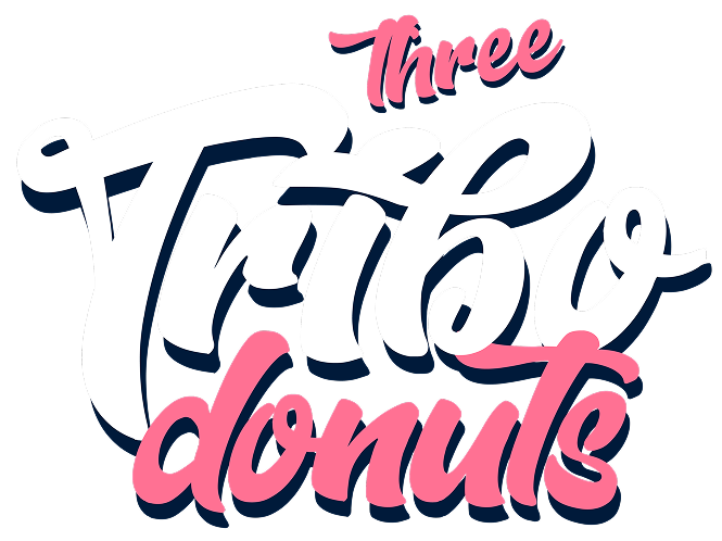 Here is a logo that has been appliedacross various media Three Tribo Donuts from websites and billboards to t-shirts maintaining recognizability, consistency, and the brand's visual identity in all formats.